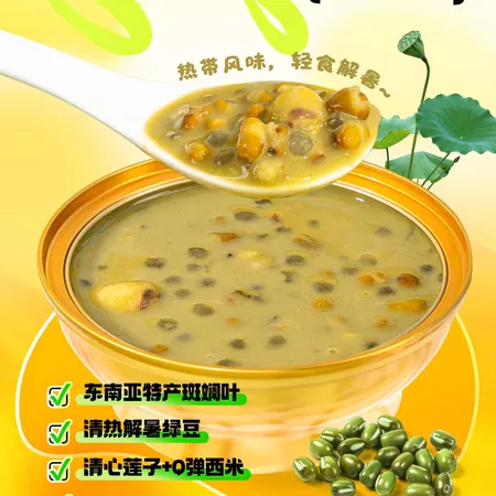A vibrant plant-based dessert made with mung beans, lotus seeds, and fragrant pandan leaves. Known for its distinct green hue and natural vanilla-like aroma, pandan adds a Southeast Asian twist to this traditional Chinese soup. Nourishes the skin, calms the mind, and clears internal heat. Smooth, lightly sweet, and suitable for all seasons. No preservatives, low sugar.