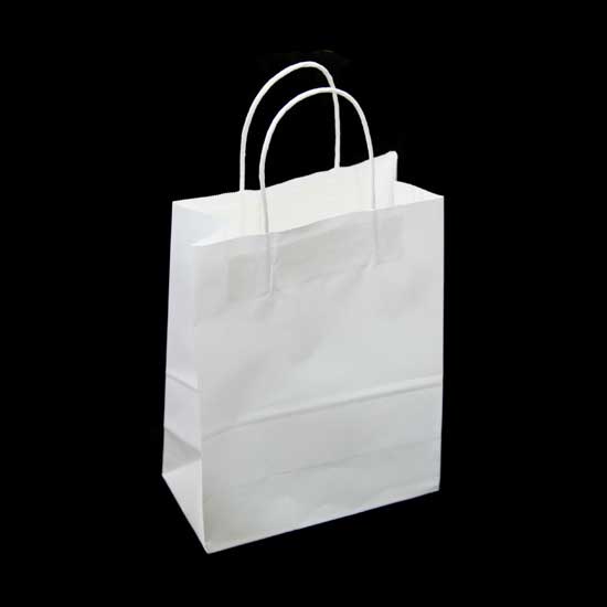 The displayed packaging bag features a solid white toned design to show simplicity. It is made of paper for a natural touch. This attractive paper bag is ideal for gift packaging.
