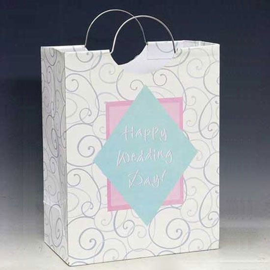 This paper bag is perfect for packing wedding gifts like wines, couple wine glasses, tableware, photo frames, etc. The paper bag is designed with an elegant pattern and special wire handles. Congratulate your friend on his/her wedding day with the most heart-warming gift packed in this beautiful bag.
