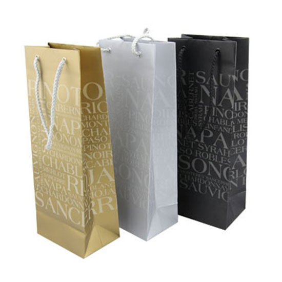 This is a wine bag with a stylish and elegant design. It is made of quality paper for a long service life. This paper bag is available in three colors for your selection.