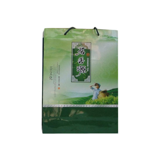 This is a paper bag with eye-catching prints. It features a glossy coating for a smooth finish. This bag is a great choice for packaging different items.
