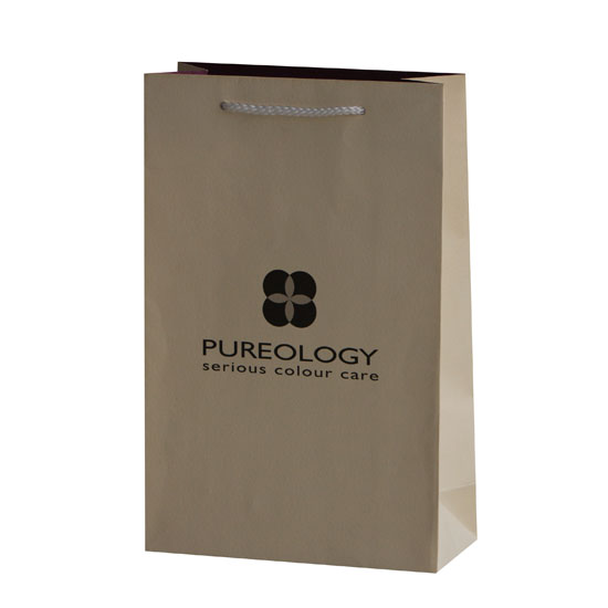 This is a paper bag that comes with a fashionable and elegant design. It features a large compartment and two top handles. The logo prints add a touch of style to the whole piece.