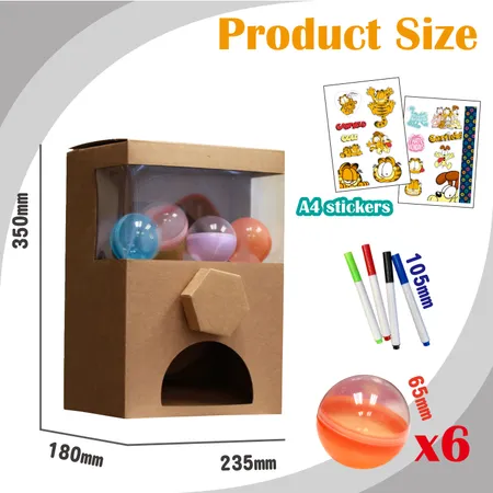 Size:235 x 180 x 350 mm Suitable capsule size: 65mmFeature: DIY , Vending MachineCertification: Eligible for EN71, ASTM F963, CPSIA 2008, phthalate testOEM ODM design is most welcome.Suitable for small toy and vending toy