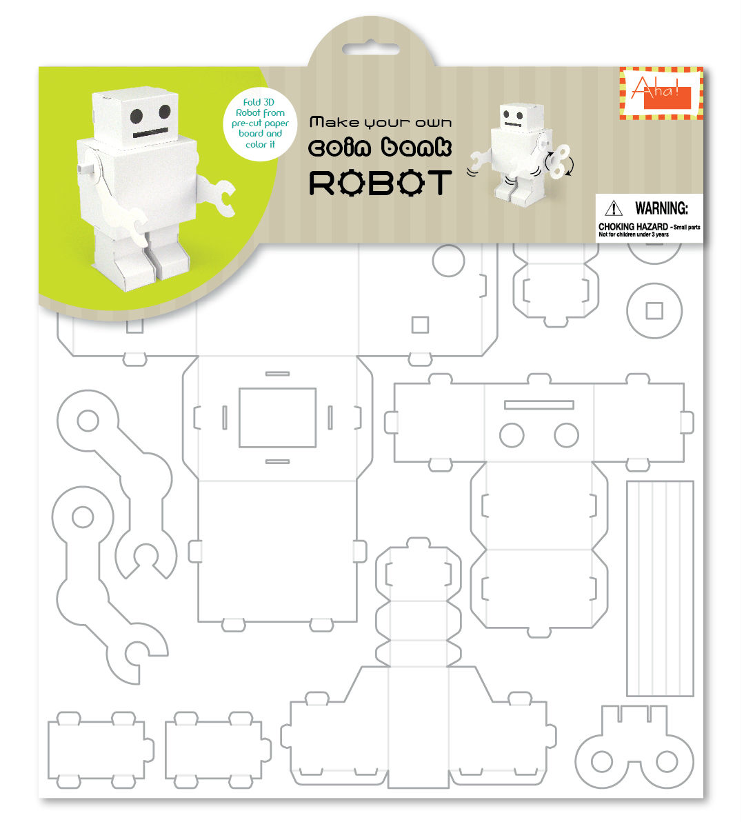 Kids can make a cute robot shaped coin bank with this pre-cut paper board . It is easy to make by following simple instructions and allows kids to color the coin bank themselves. This paper coin bank is excellent for developing a habit of saving at an early age and can inspire the creativity of kids.