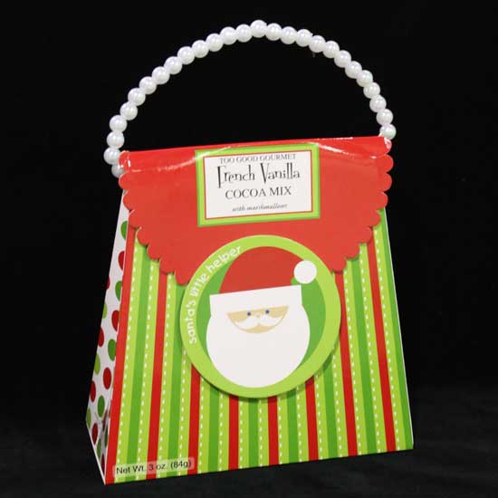 This cute packaging bag is made of high-quality paper. It is printed with green and red strips. The Santa Claus adds a festive mood. The handle is made of white beads. Put your gift inside this bag and send it to your friends.