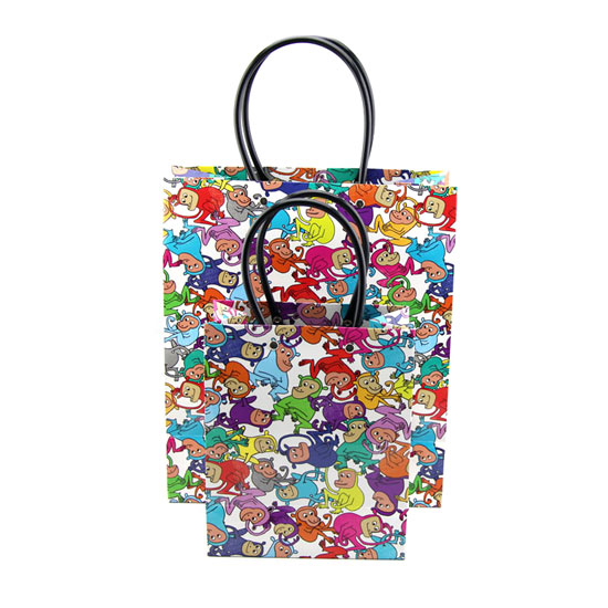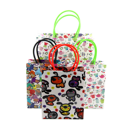 This gift bag is made of top-grade coated paper for high durability. This paper gift bag is designed with colorful prints for an eye-catching look. This printed paper bag is finished with plastic pipe handles on the top.