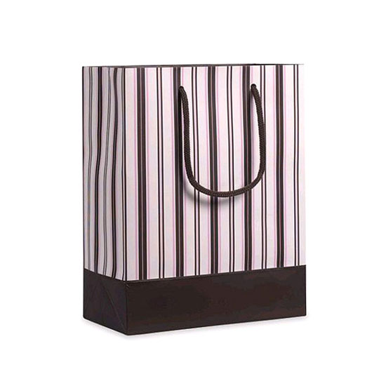 This is a paper gift bag with an eye-catching and stylish design. It is printed with colorful vertical stripe patterns. This paper bag is a great accessory for packing assorted gifts.