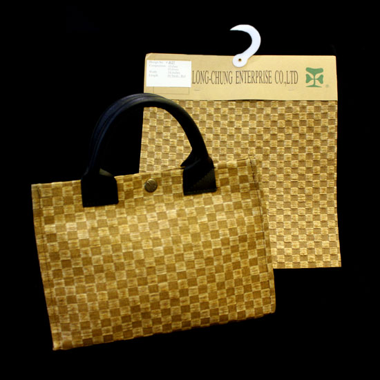 This fashionable handbag is constructed from 100% natural paper. It features allover brown hued check patterns for an added style. The sturdy handles promise long time using.