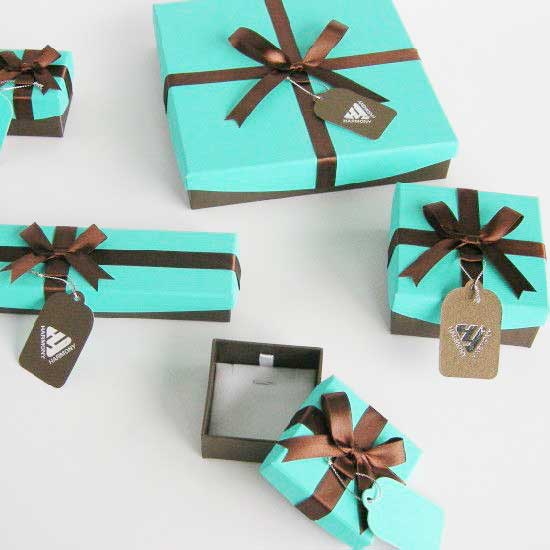 This is a paper jewelry box set including a ring box, a pendant box, a bangle box, etc. Each jewelry box is made of top-quality paper to give it a natural texture. Adorned with a silk-like bowtie, this jewelry box series is ideal for packing your precious jewelry pieces nicely.