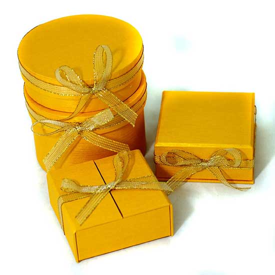 This paper packaging box is made of top-quality cardboard paper for the longest serving time. Golden and silky ribbon is attached as an elegant decoration. Rectangular and circular shapes are available for you to choose from.