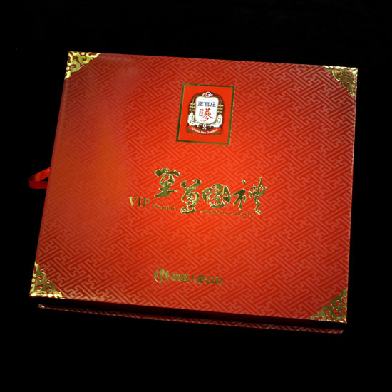 This rectangular-shaped packaging box is finely made of paper. Showing off a vibrant red hue with contrasting golden-color patterns, this paper packaging box suggests luxury and class. This quality paper packaging box is sure to dress up your products with elegance.