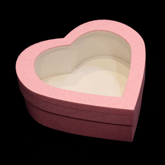 This paper packaging box showcases a romantic heart-shaped design in pink. The open-top design gives you a glance of the content. This paper packaging box makes a sweet choice for containing products for Valentine's Day.