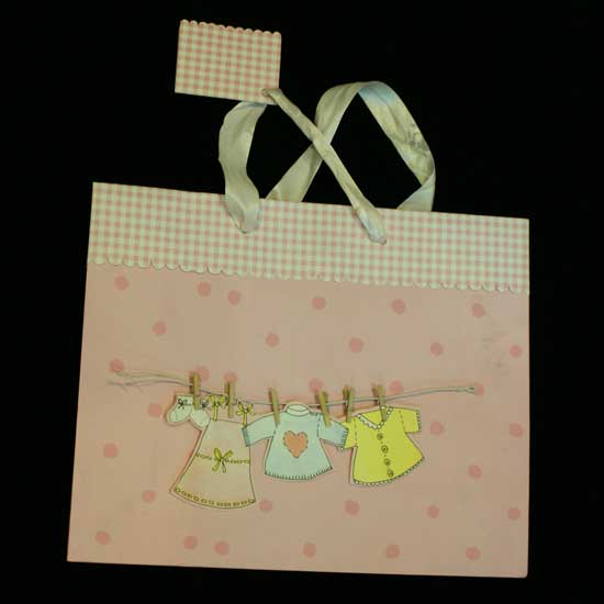 Featured is a printed paper shopping bag with a fancy polka dot background. The exquisite embellishments add a touch of uniqueness. This paper shopping bag also makes a great choice for gift presentation.