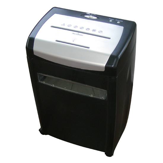 This is a paper shredder where a maximum of 12 sheets can be put in each time. The paper shredder is equipped with a 28L waste basket for collecting the shredded papers.