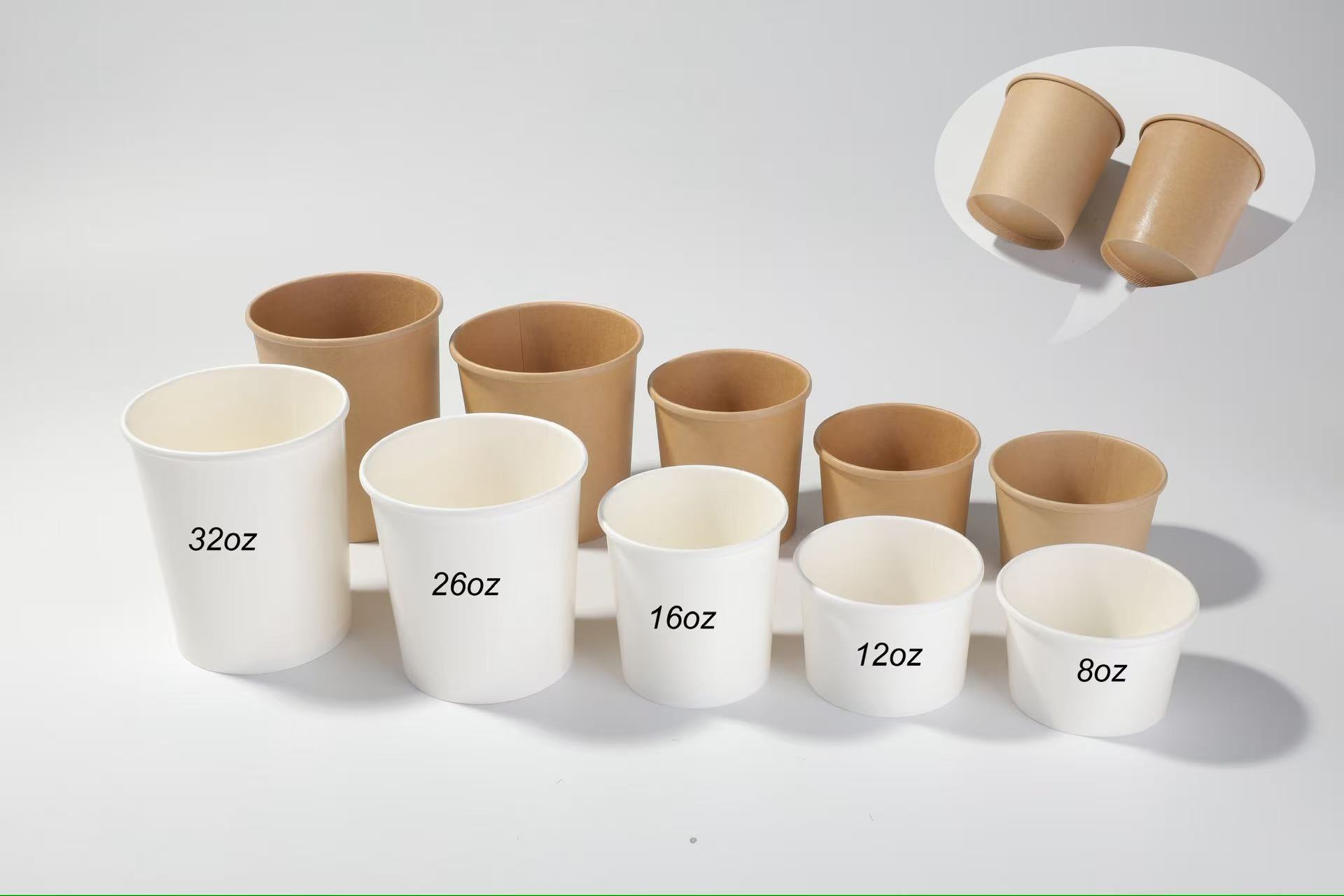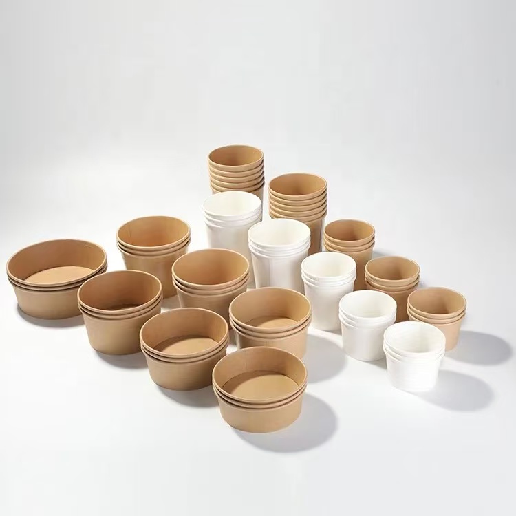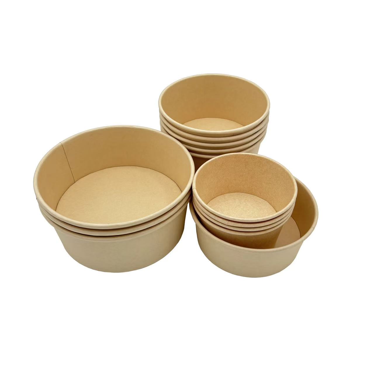 Our disposable paper bowls are available in multiple sizes (from 8oz to 32oz) and versatile shapes, including round soup bowls and rectangular food containers, in both natural kraft and white card options. Made of food-grade, waterproof and oil-resistant paper with leak-proof construction, they are safe for hot and cold food, ideal for takeaway, soup, salad, noodles and meal prep. They can be paired with matching paper or compostable lids, supporting custom logo printing, with FDA and FSC certifications. Factory direct supply with stable quality and competitive wholesale price.