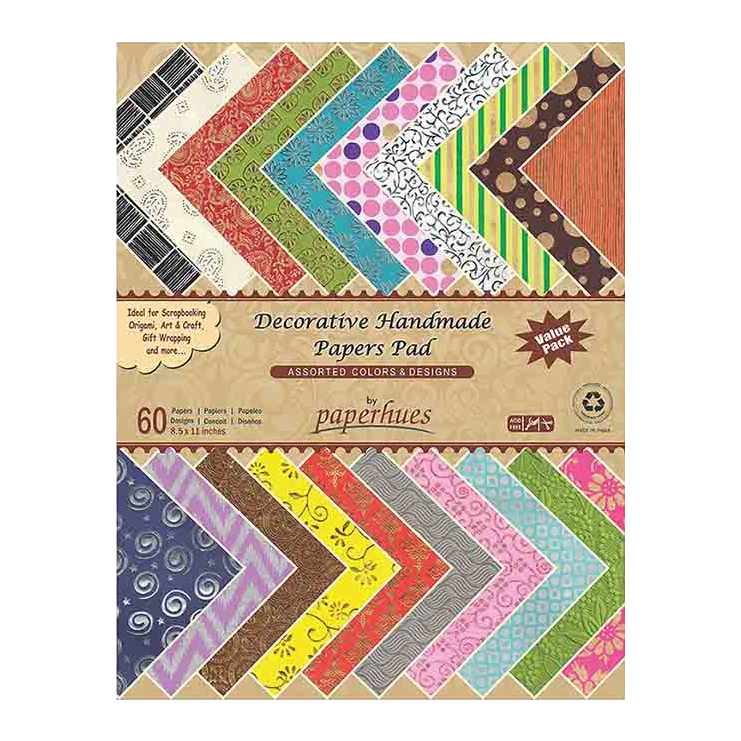 Paperhues Decorative Handmade Paper A4 Pad offers an irresistible collection of the most aesthetically designed environment friendly papers from India. Each pad contains 60 sheets of designer decorative specialty handmade papers in size A4, color coordinated in a beautiful pad for your creative pursuits. Each of these papers have been handpicked to offer the most exquisite range of handmade papers with processes like embossing, screen printing, hot stamp foiling, batic, marbled, gel printing etc giving it an opulent look. These papers are ideal for scrapbooking, card making, Christmas decoration, decorative gift wrapping, book covers, decoupage, origami and for all other paper art.