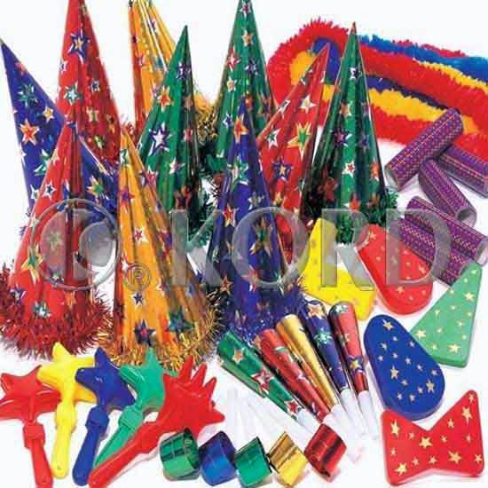 Featured is party assortment in a window box. It contains 10 tinsel hats, 5 blowouts, 5 horns, 5 star clappers, 5 noisemakers, 5 poly leis and 90 serpentine throws. These party favors are must-have items for guaranteeing a blast in your party.