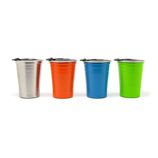 This is a party cup coming in four colors for your selection. Made of premium quality stainless steel, this cup is lightweight and resistant to impact. It is fitted with a lid to prevent fluid from spilling out.
