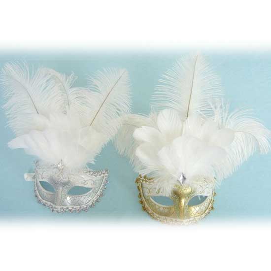 This party mask can cover the half of your face only. It is decorated pure white feathers on top for added charm. Different colors are available for your selection.