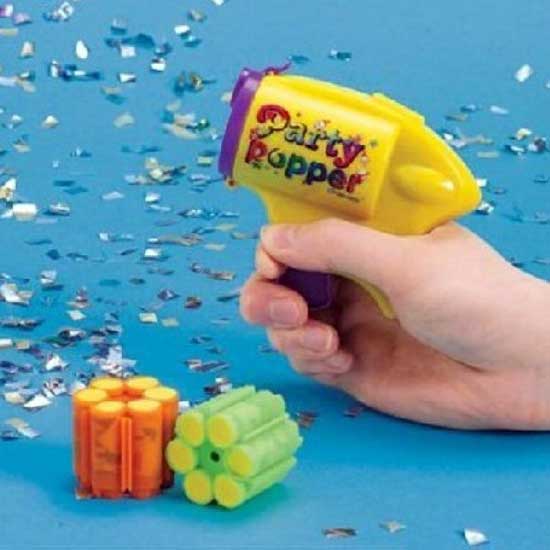 This party popper gun in yellow and purple features a compact size for ease of use. It can pop glitters to bring a festive touch to the party. The advanced design allows users to change bullets easily.