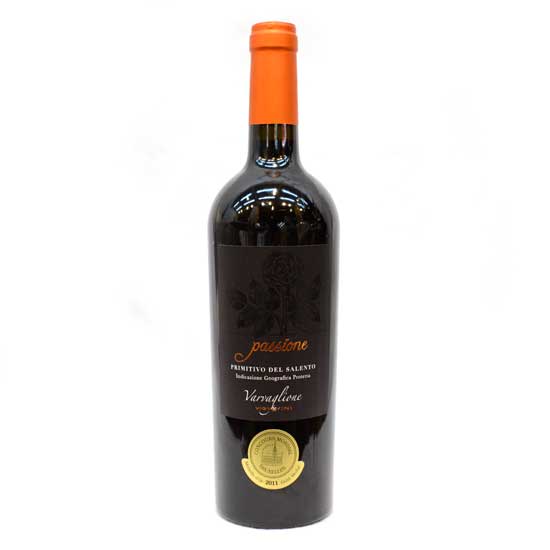 This bottle of Passione 2010 produced by Vigne & Vini is made with Primitivo grapes solely. It features a deep ruby red color and has elegant fragrances. This full-bodied red wine goes great with many Mediterranean dishes.