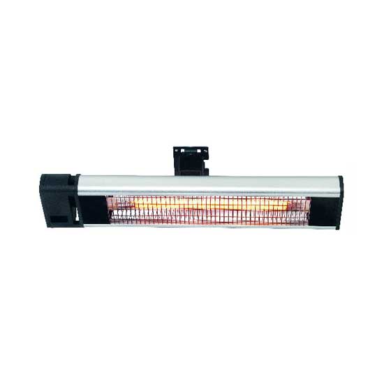 Displayed is a patio heater that can be mounted on ceilings and walls. With a strong power of 1,800W, this heater guarantees to offer warmth for your space. With a high quality aluminum reflector, this patio heater is a smart choice for you.