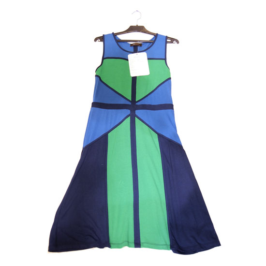 The dress is designed with symmetrical patterns in vibrant colors. The sleeveless design allows you to stay cool and comfortable in hot weather. This young, dynamic dress makes an ideal add-on to your summer wardrobe.
