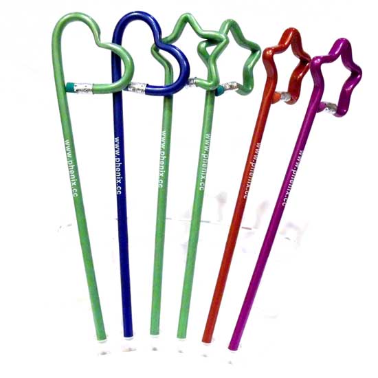 Showcased here are pencils that come with special designs. Their tips are bent into either star shape or heart shape. The pencils come with a convenient design with erasers on the tips.