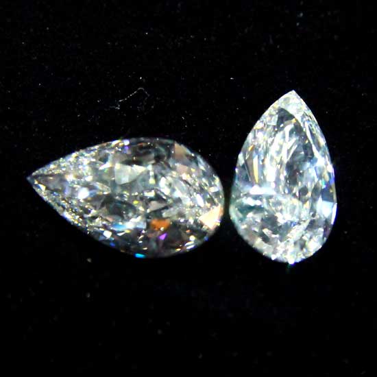 Highlighted here is a pair of diamond in pear cutting. They are finely cut and polished with exquisite craftsmanship and attention to details. This pair of carat-size diamond is perfect for your high-end jewelry design.