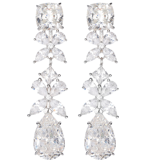Pear Shape Diamond G Color And White Cubic Zircon Rhodium Silver Earring