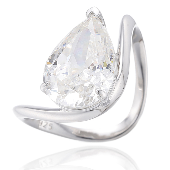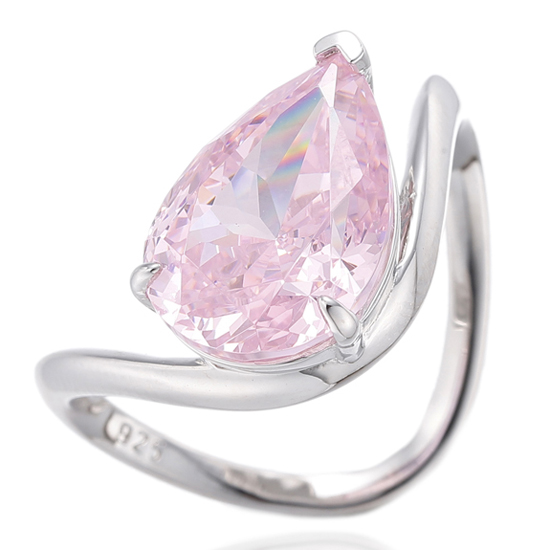 Pear Shape Diamond Pink Cubic Zircon Rhodium Silver Ring