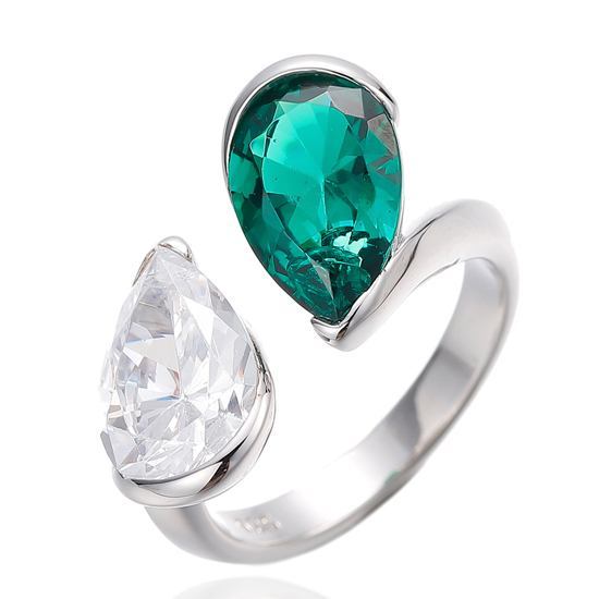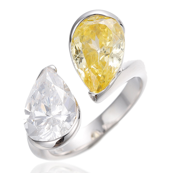 Pear Shape Diamond Yellow And White Cubic Zircon Rhodium Silver Open Ring