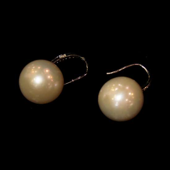 Outlined is a pair of dainty earrings in a simple yet fashionable design. The large lustrous round white pearl delights you with elegance and glamor. This pair of graceful pearl earrings is an ideal addition to your jewelry collection.