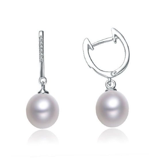 This is a pair of fresh water pearl earrings with great craftsmanship and delicate details. This pair of fashionable earrings is crafted with dazzling CZ stones for added glamor. This pair of pearl earrings goes well with your outfits.