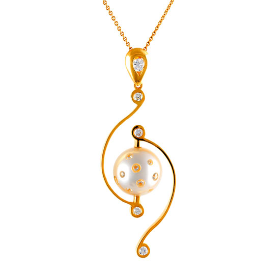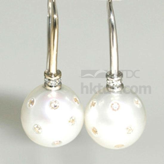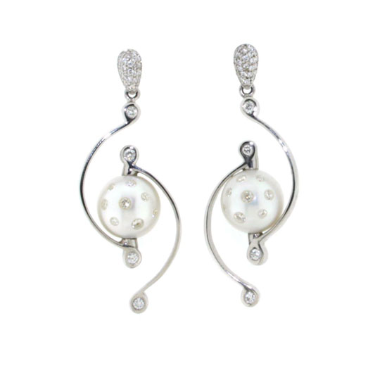 - 11mm white South Sea pearls embellished with 0.30ct brilliant-cut white diamonds.