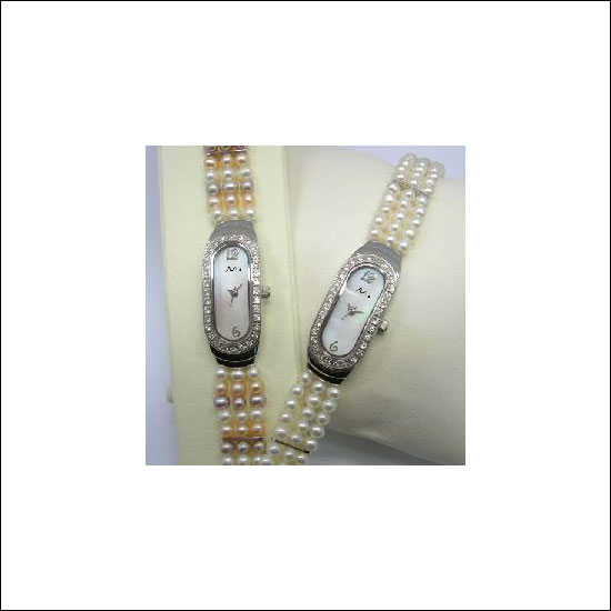 The pearl jewellery watch case is made of 925 silver and plated with rhodium.