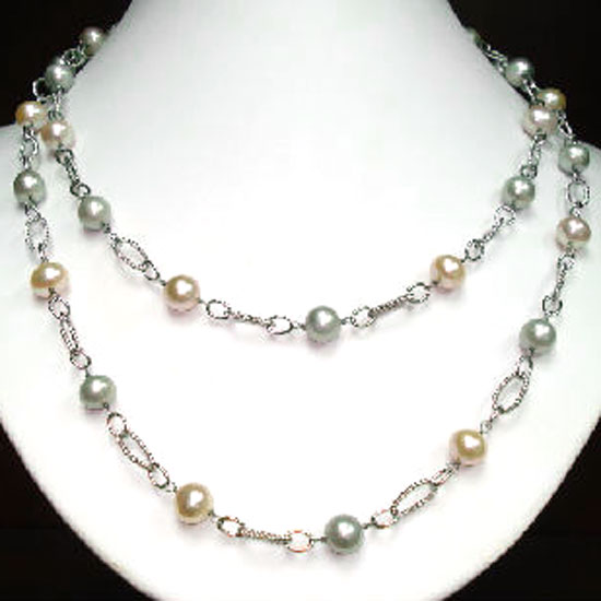 Presented here is a sophisticated necklace in a sterling silver setting. The well-polished pearls add a brilliant shine to the necklace. This 925 silver necklace complements your look nicely.