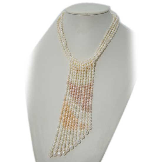 - Pearl strands draped in different lengths.