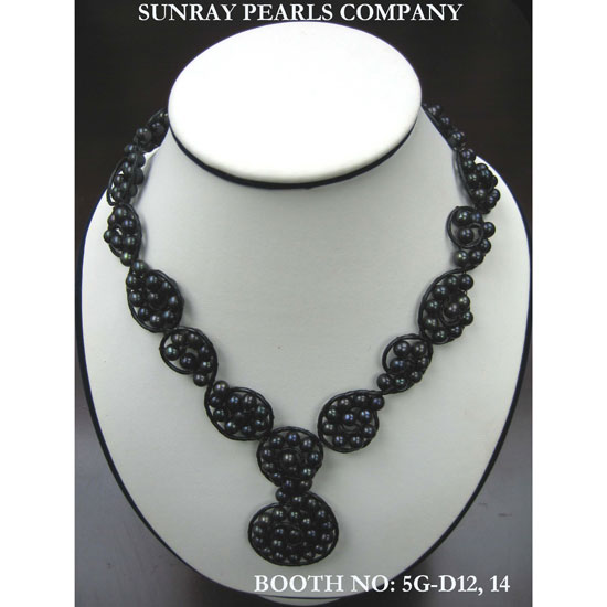 This stunning necklace is made up of clusters of black pearls accented with black wire. The smooth round black pearls exhibit extraordinary luster and shine. The gorgeous necklace is sure to make you the focal point at any party.