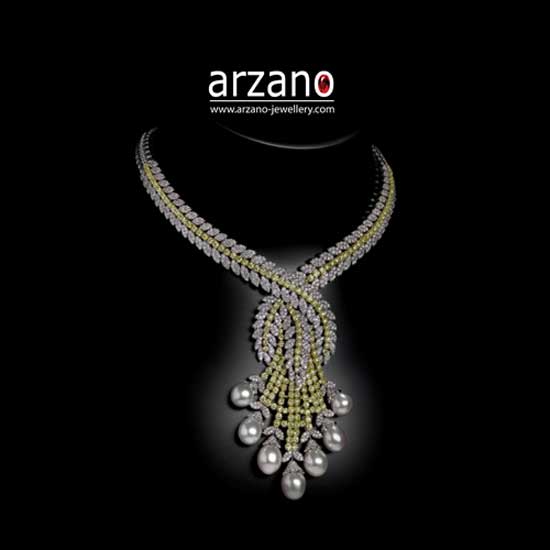 This classy and tasteful necklace features seven gradient white beads with lustrous finish. It also spotlights a snake-like chain paved with shimmering yellow and white stones. The stunning necklace is a great accessory for any formal wear.