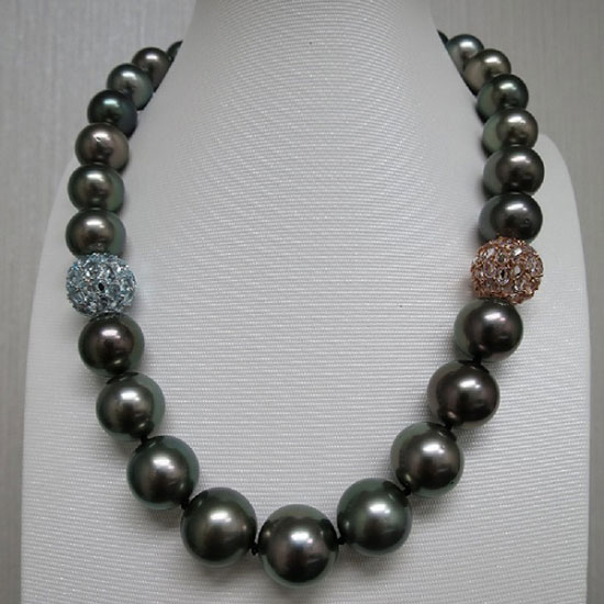 - Tahitian black pearl necklace.