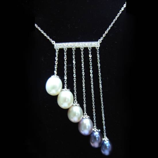 Featured is a pearl pendant in round cut. The pearls come in various colours such as silvery blue, purple and white. They are well cut in round shape and are well polished for maximum shine.