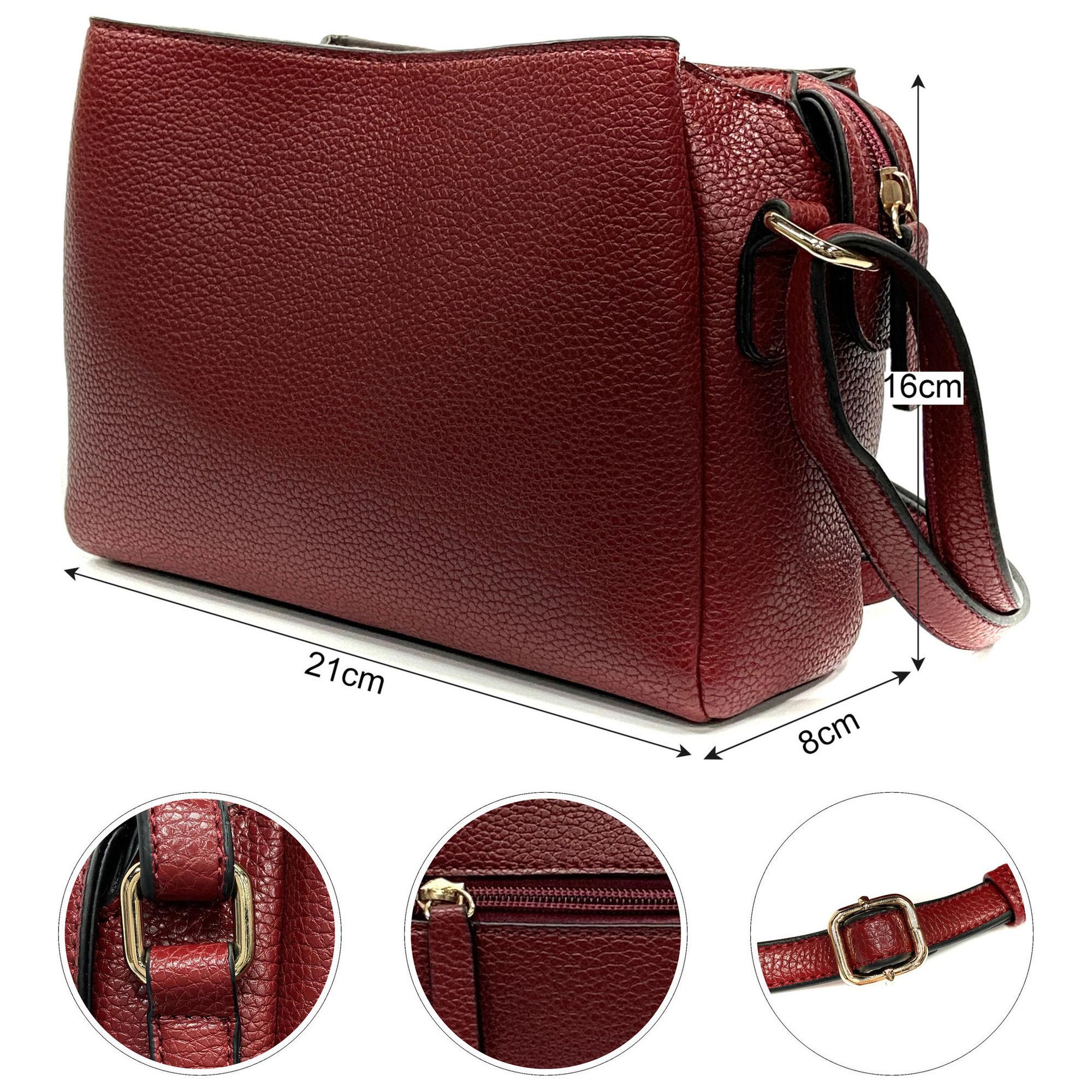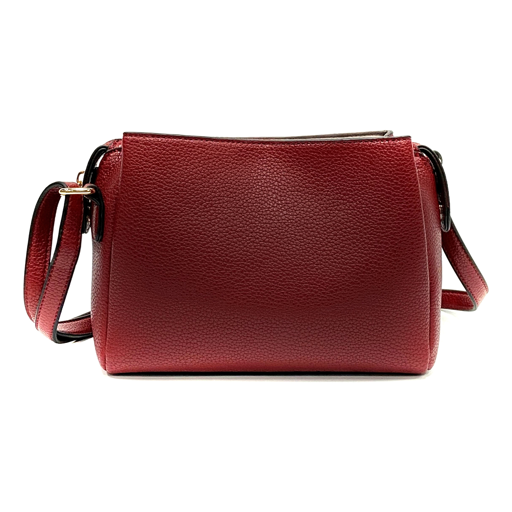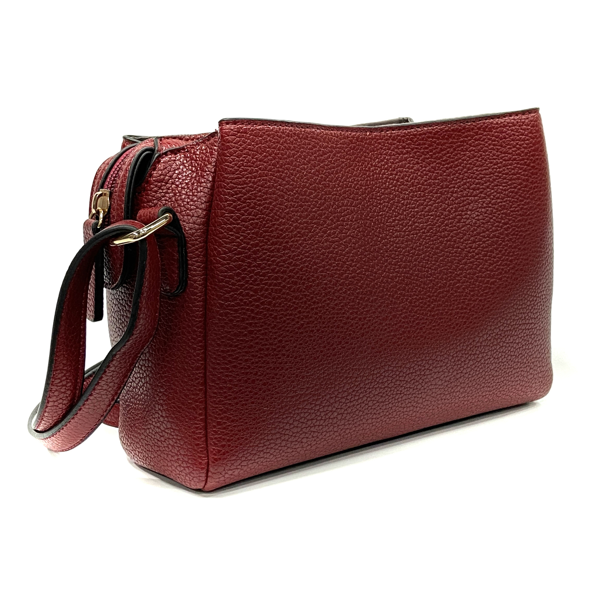 Pebble Grained Imitation Leather Women handbag Crossbody Zipper closure Burgundy