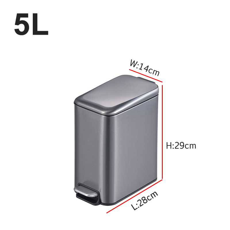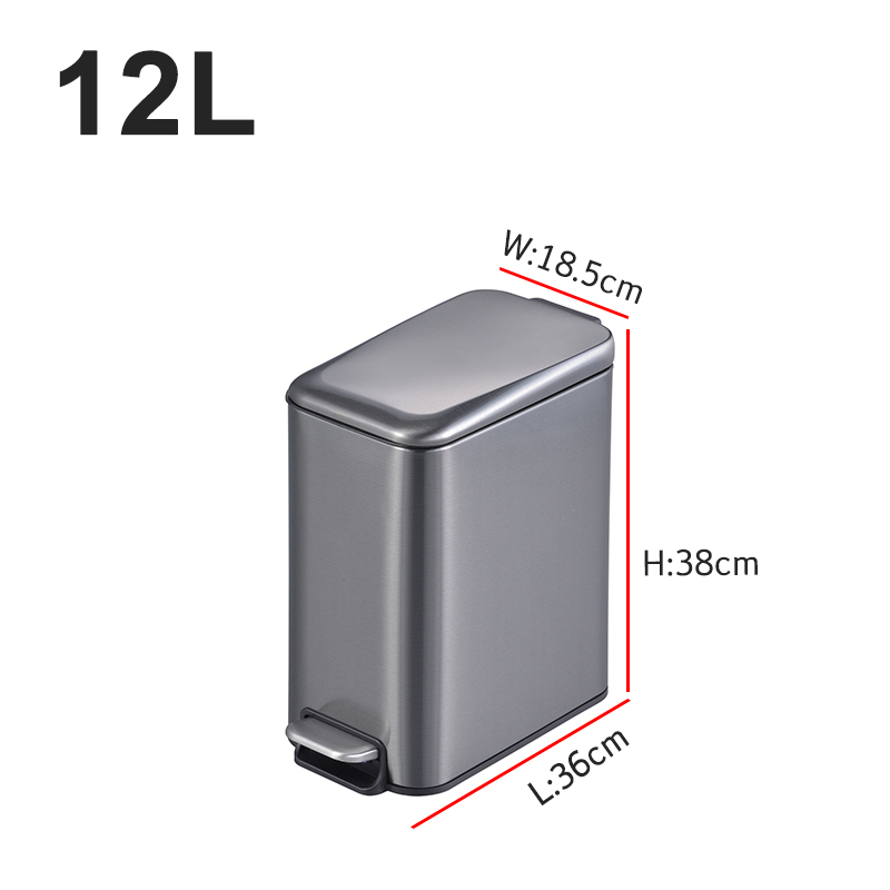 5L/12L/20L Rectangular Slim Waste Pedal Bin Soft Close Removable Inner Bucket