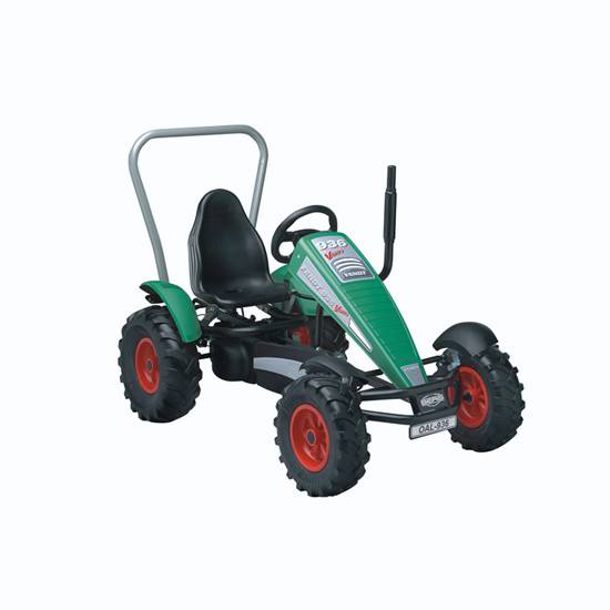 Driving your own tractor is now possible with this pedal go-kart. It is made in the original style of Fendt. The Fendt BF-3 go-kart has an impressive exhaust pipe and tractor tires with diameters no less than 46cm at the rear and 40cm at the front. This Fendt BF-3 also comes standard with a lifting unit, roll bar, front mud guards, and of course, 3 gears.