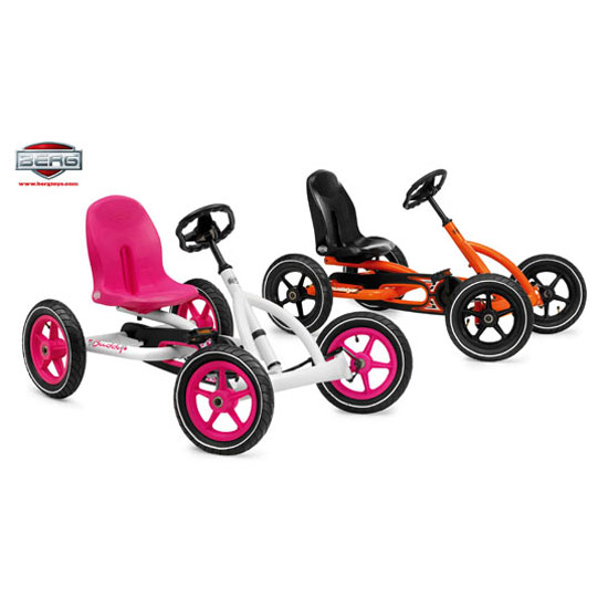 The pedal go-kart is especially designed for children. The lovely pink-and-white model captures little girls' eyes, while the boys will surely love to race with the cool orange one. This pedal go-kart is an excellent gift for children.