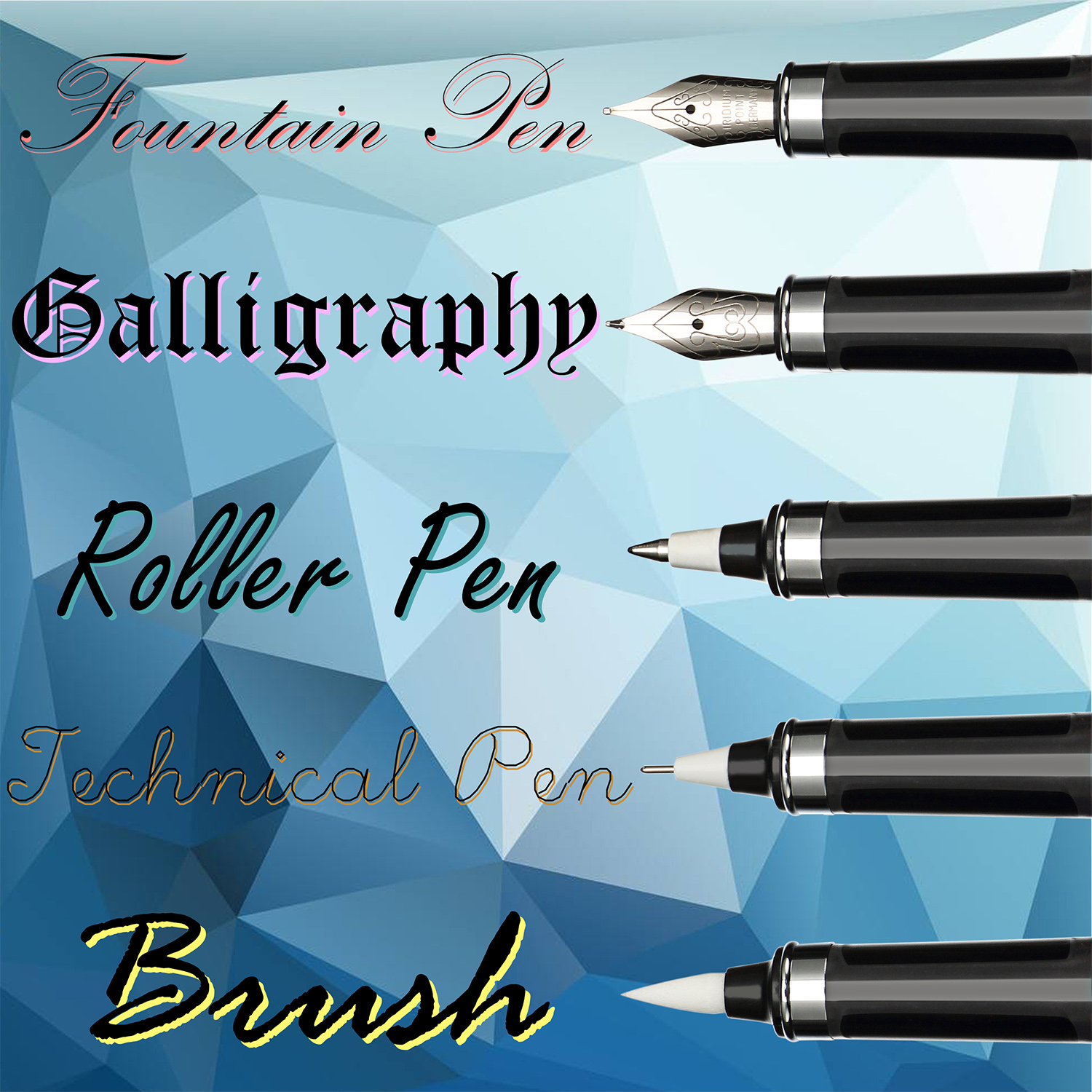 Calligraphy pen with ink for blue or black cartridge.