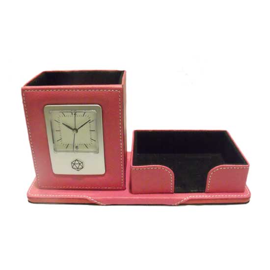 This is a stylish pen case in lovely and attractive pink color. The pen case is exquisitely made with well-matched stitch detailing with square-shaped corners. The built-in clock is designed for users to read the time easily.
