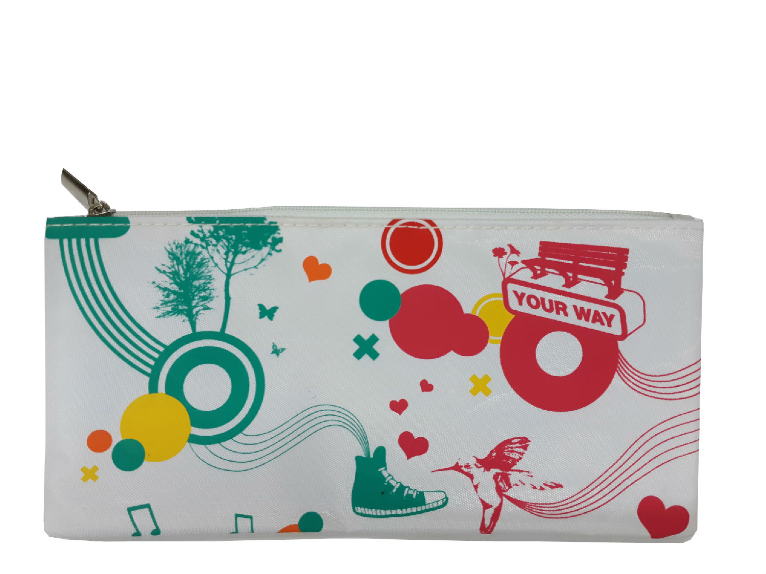 Take your stationery to school or work with this polyester pencil case. It is rectangular shaped and is decorated with lovely artwork on the exterior. This pencil case has a zipper on top for closure and provides easy access to items inside.