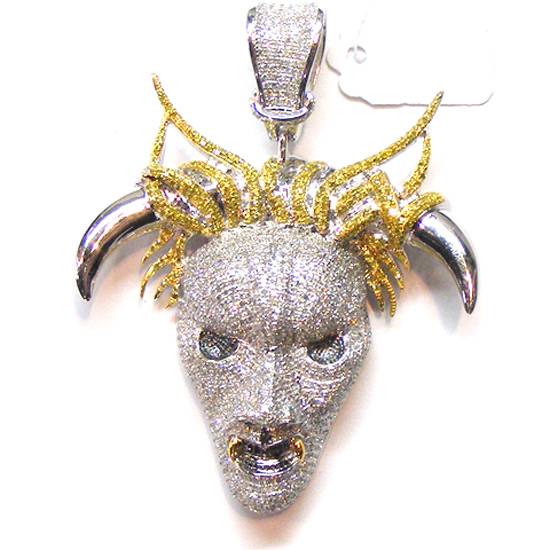 This is a pendant made of 18K white gold and decorated with micro set diamonds. The diamonds are arranged in pave set to give a sparkling appearance.
